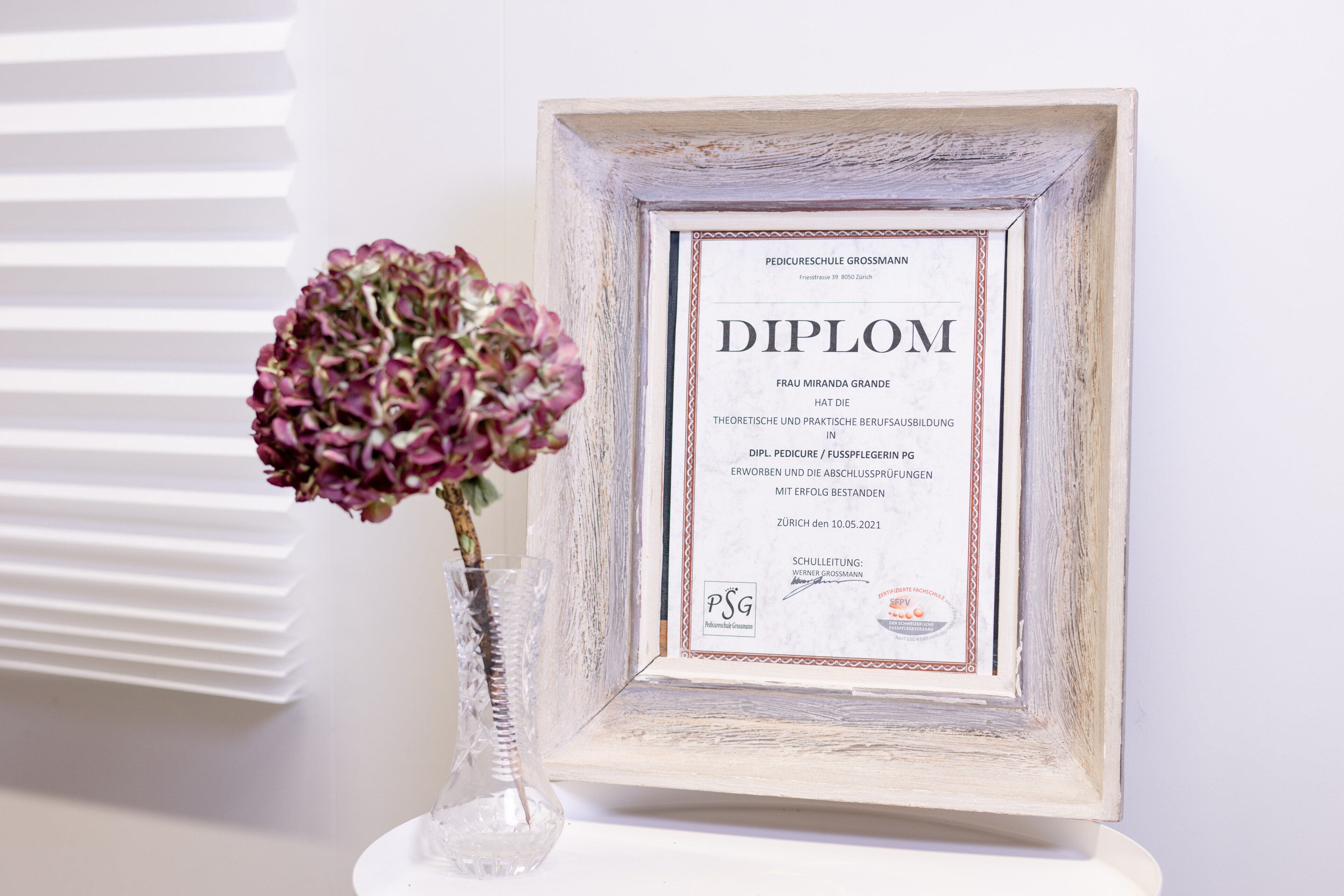 In den letzten 8 Jahren, in denen ich als Pflegefachfrau in der Spitex gearbeitet habe, wurde mir bewusst, wie wichtig eine gute Fusspflege ist. Sie kann viele Folgen der täglichen Schwerstarbeit der Füsse beseitigen und trägt zum allgemeinen Wohlbefinden bei. Also entschied ich mich, die Ausbildung an einer vom schweizerischen Fusspflegeverband (SFPV) anerkannten Fachschule für Fusspflege zu absolvieren.